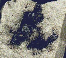 In grauweißen bis gelblichen, porzellanartig dicht gesinterten Sandsteinxenolithen fanden sich sehr selten bis 2mm große Hohlräume, in denen einzelne oder einige wenige Paulingitkristalle ohne weitere Begleitmineralien aufgewachsen waren. |